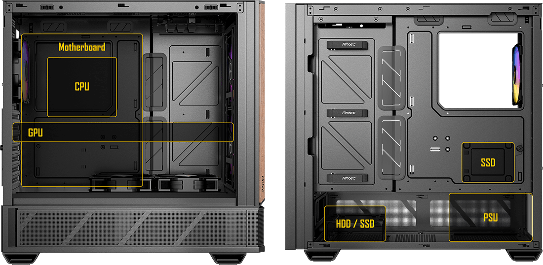 Large side intake design enhances airflow, while about 30mm of clearance between the bottom fans and the GPU allows reverse fans to deliver direct, efficient cooling.