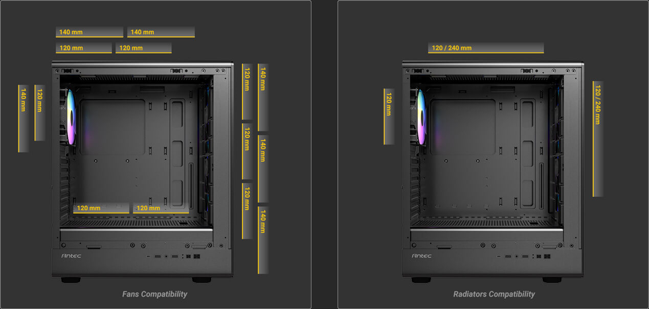 Included Fan(s) 3 x 120mm ARGB fans at the front + 1 x 120mm ARGB fan at the rear
