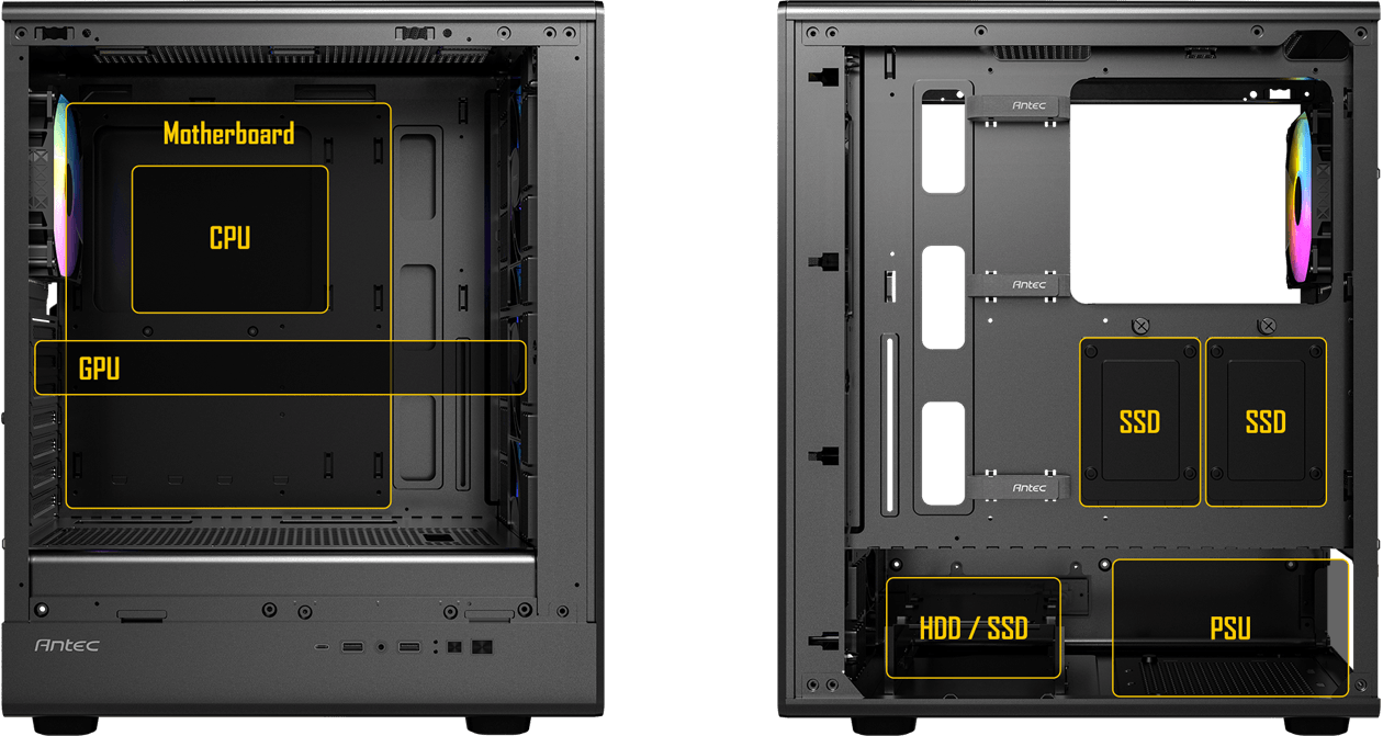 Pre-installed with 4 ARGB fans — 3 x 120mm ARGB fans at the front + 1 x 120mm ARGB fan at the rear.