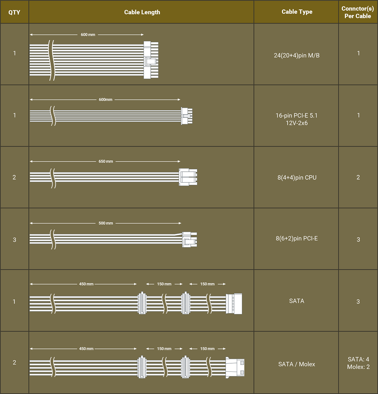 | 1 x 16(12+4)pin PCIE 5.1 12V-2x6 | |