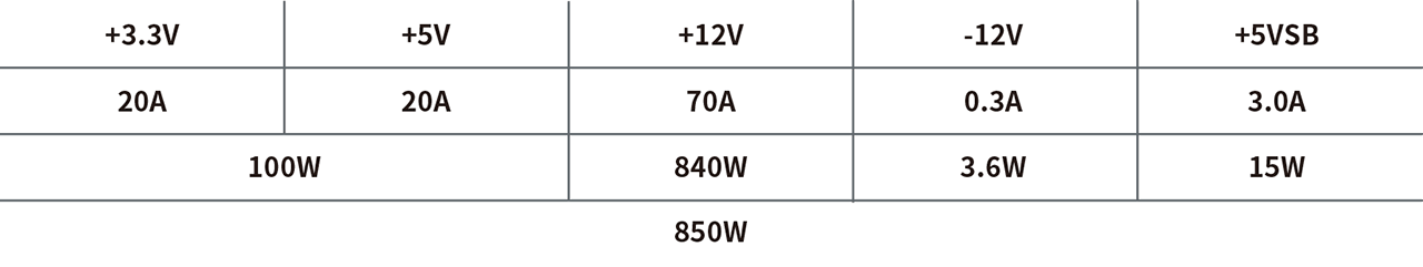 | Output Capacity | 850W |