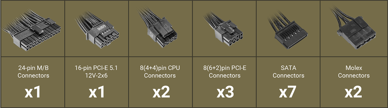 | 1 x 16(12+4)pin PCIE 5.1 12V-2x6 | |